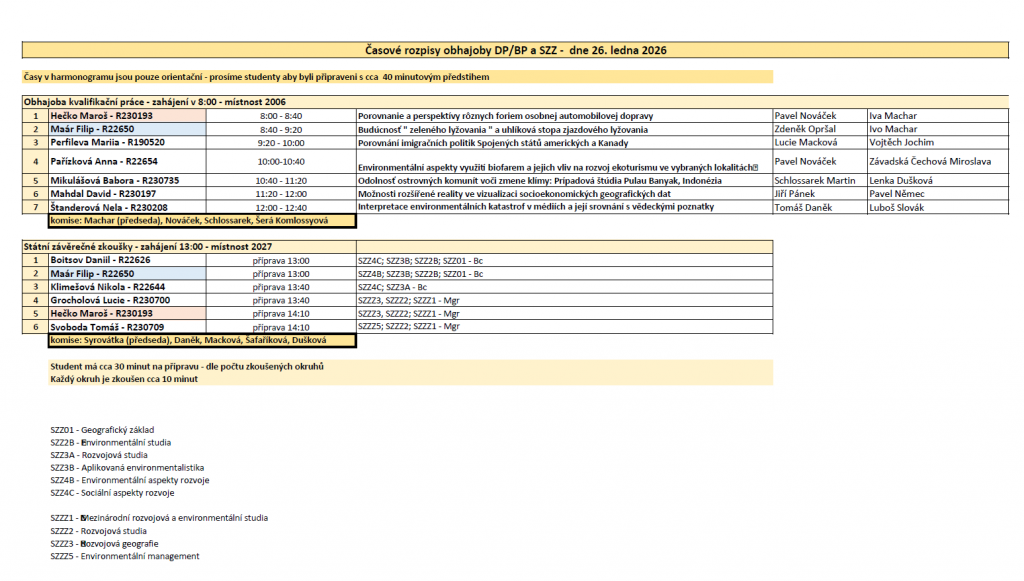 Časy v harmonogramu jsou pouze orientační – prosíme studenty aby byli připraveni s cca 40 minutovým předstihem.